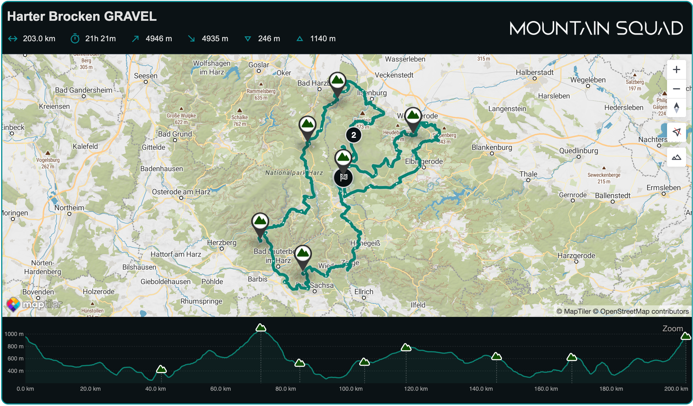 Bereit für 202 Kilometer puren Gravel Genuss durch den Harz? Mit satten 5.123 Höhenmetern führt dich unsere Strecke über acht beeindruckende Gipfel, vorbei an mystischen Tannenwäldern, idyllischen Seen und historischen Fachwerkstädten. Du überquerst imposante Talsperren, erkundest verwunschene Laubwälder und genießt spektakuläre Ausblicke auf die Harzer Bergwelt. Mit über 90 % Schotteranteil ist diese Route ein echtes Abenteuer für Gravel-Enthusiasten.